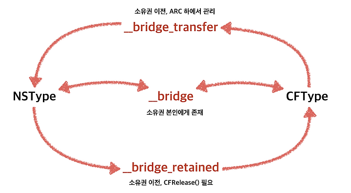 어떻게 보면 __bridge 는 CFType 쪽 코드를 투명하게 보여주기 때문에 오히려 문제 발생 가능성을 줄일 수도 있기 때문이다.
