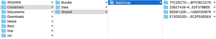 App Group은 ~/Library/Developer/CoreSimulator/Devices/DFE32C7F-97F6-4CCC-9421-490834C8ED7D/data/Containers/Shared 에 위치한다. (시뮬레이터 기준)
