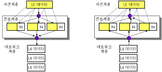 통신 세션을 구성하는 계층으로 포트(port) 연결이라고도 할 수 있다. 통신 장치 간의 상호 작용을 설정하고 유지하며 동기화한다. 사용자 간의 포트 연결(세션) 이 유효한지 확인하고 설정한다. |