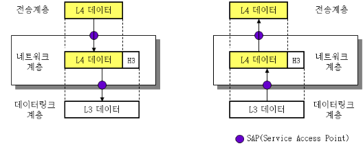 수신 시 1계층에서 7계층으로 헤더를 떼어낸다. (디캡슐화)