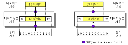 출발지에서 데이터가 전송될 때 헤더가 추가되는데 2계층에서만 오류제어를 위해 꼬리부분에 추가된다.